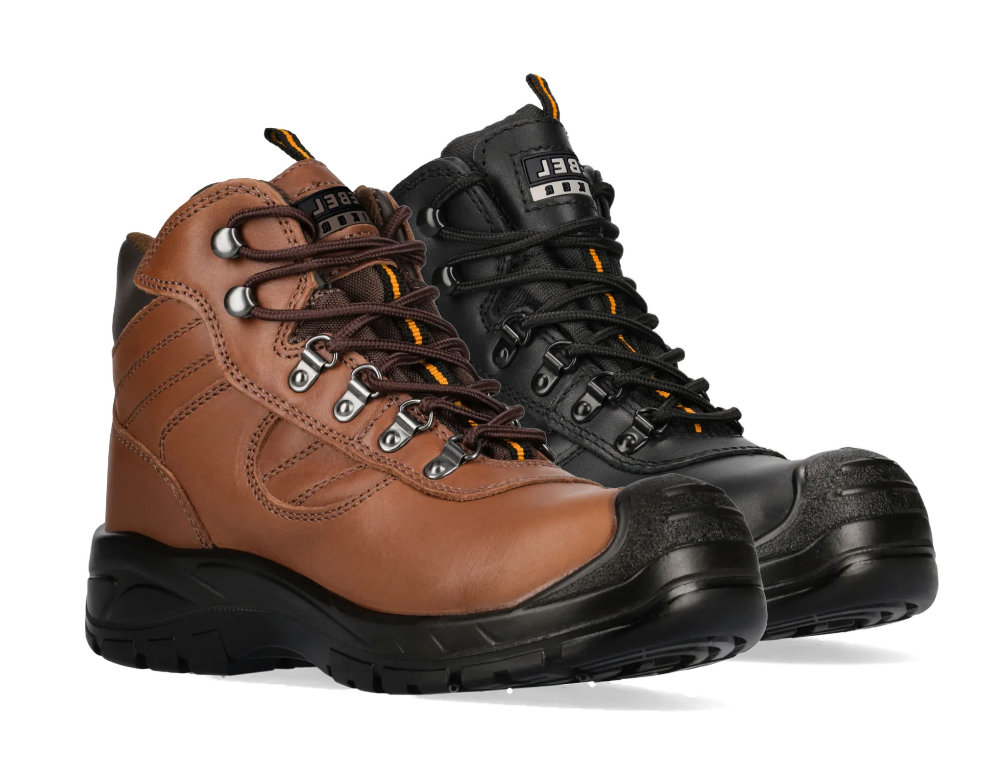 The Hiker HI is a superior work boot with a range of premium features including a high-quality, full grain, waxy leather upper, 200J steel toe cap, and toe bumper for added scuff protection. The Hiker HI provides excellent safety, comfort and style in a traditional design available in black or brown, and is ISO 20345 and NRCS approved.