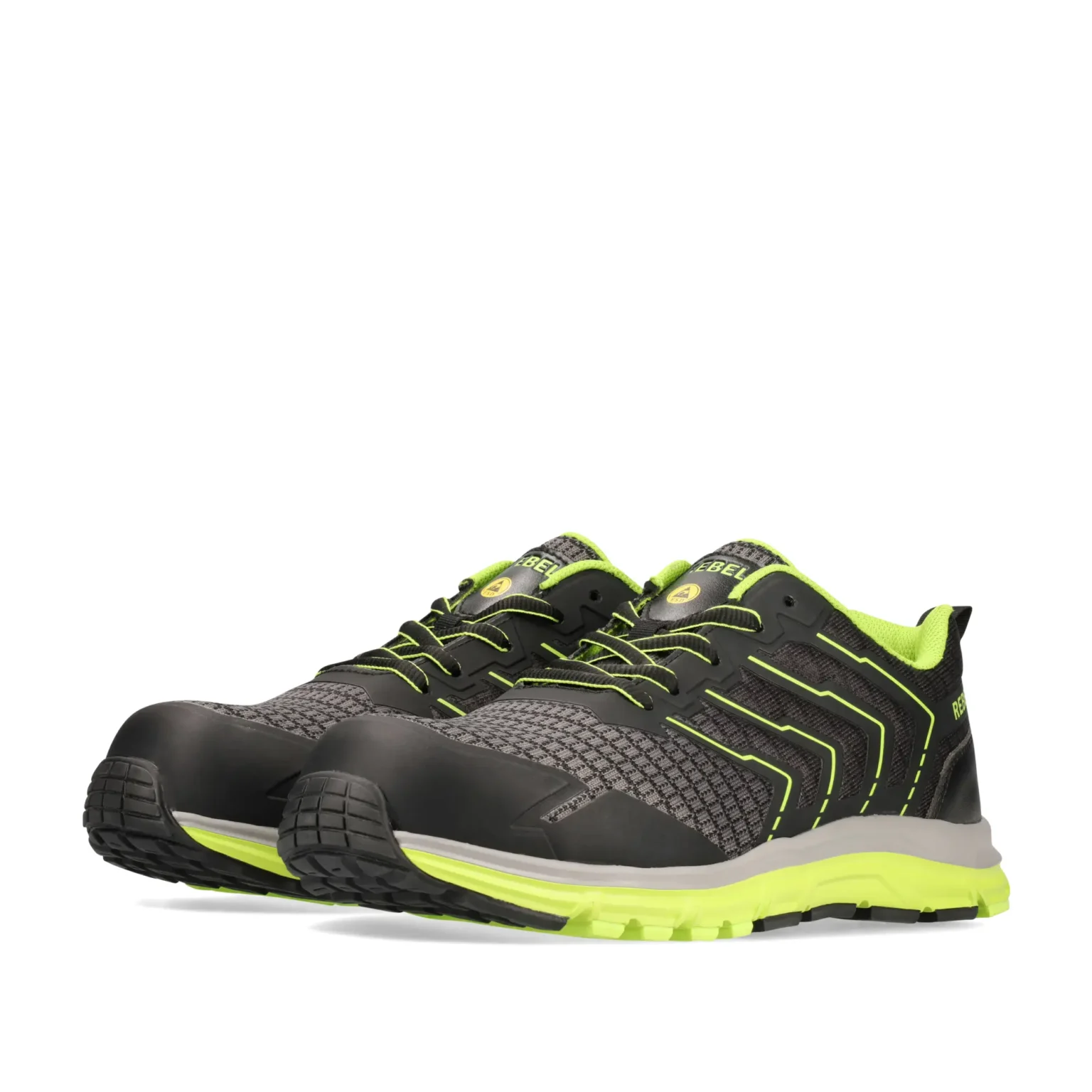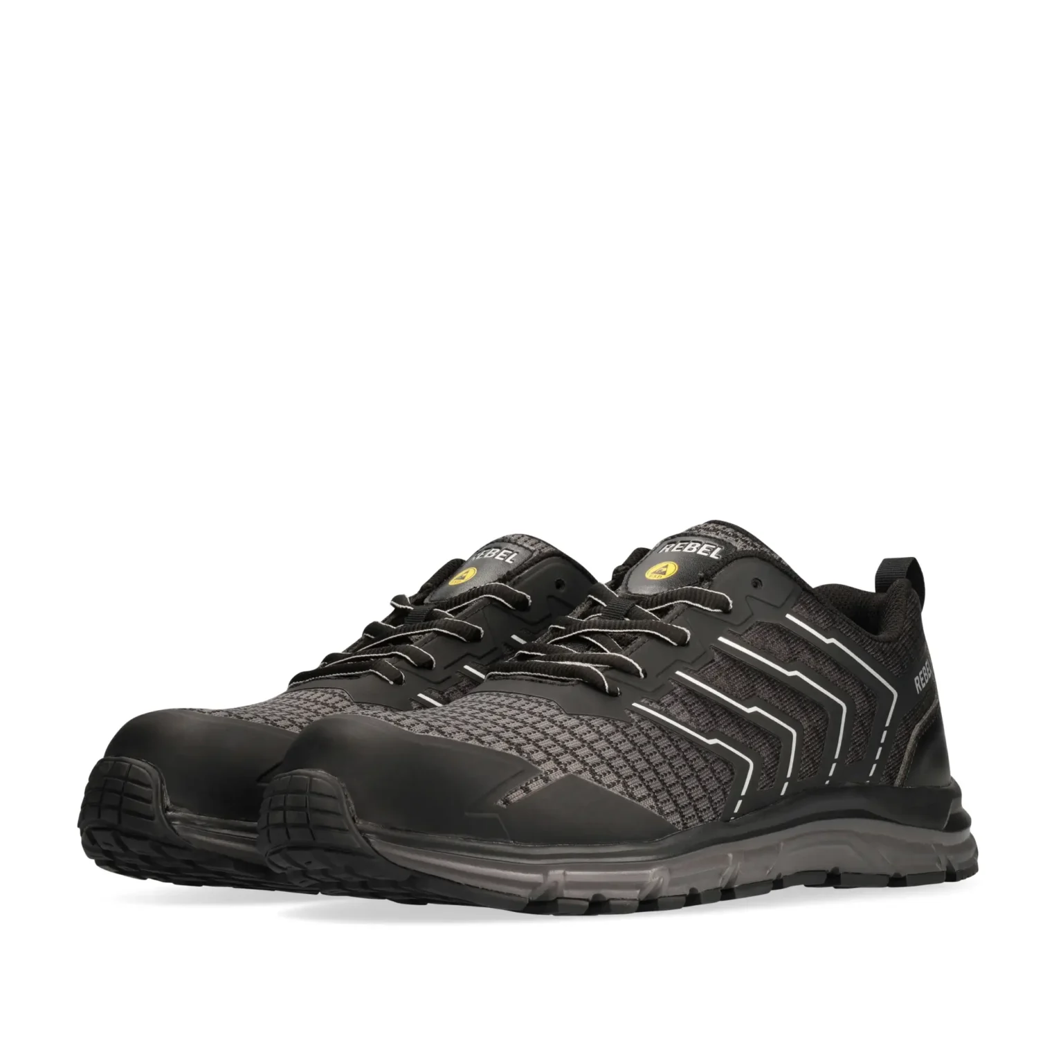 The REBEL Unisex Light Industrial 2.0 Shoe is a lightweight, flexible, and durable safety shoe designed for all-day comfort. Its high-quality flex-mesh upper enhances breathability, while the 200J composite (non-metallic) toe cap and reinforced TPU front tip offer reliable protection. The EVA midsole and slip-resistant rubber outsole provide superior cushioning and stability, making it ideal for demanding work environments.