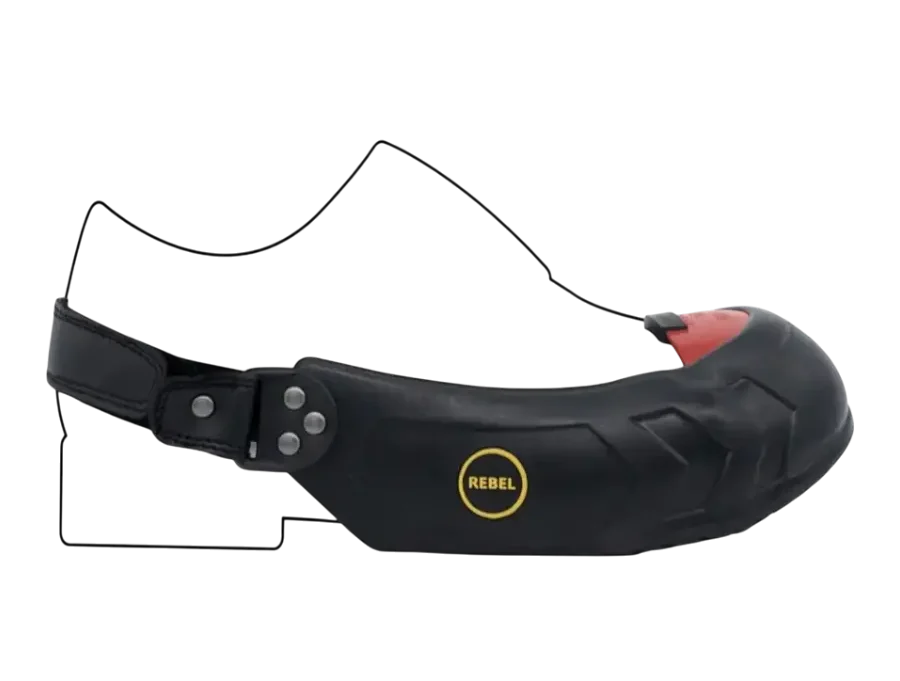 The Rebel Overshoe is a lightweight unisex safety visitor overshoe that features an aluminium toe cap with a durable and flexible rubber anti-slip sole. An adjustable Velcro strap ensures a custom and comfortable fit for any wearer. The Rebel Overshoe is available in three sizes to cover a size range from UK size 2 – 13+.